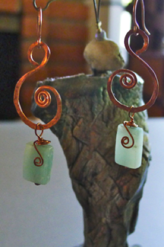 Textured copper, semi-precious bead; approximately 1.5” long