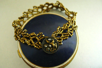 Glass beads, antique steel cut button