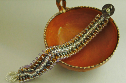 Glass beads, pearls, semi-precious beads, mother of pearl antique button clasp