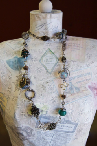 Wire wrapped beads, glass beads. Approximately 2” x 1.25”