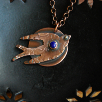 Hammered copper with Lapis stone approx. 1” on copper chain.
