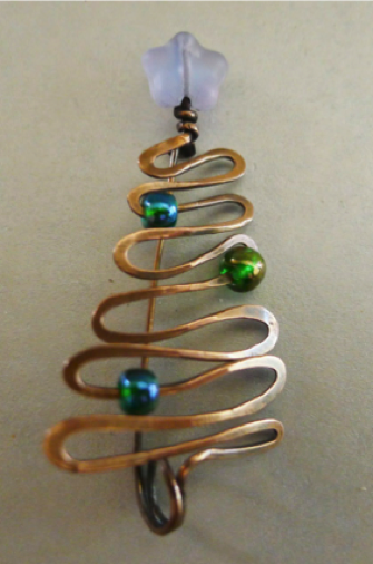Copper, glass beads; approximately 1” long